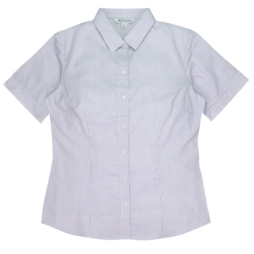 HENLEY LADY SHIRT SHORT SLEEVE - WHITE/PURPLE - RUNOUT