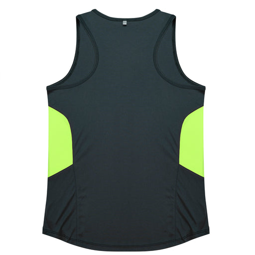 TASMAN LADY SINGLETS - SLATE/NEON GREEN