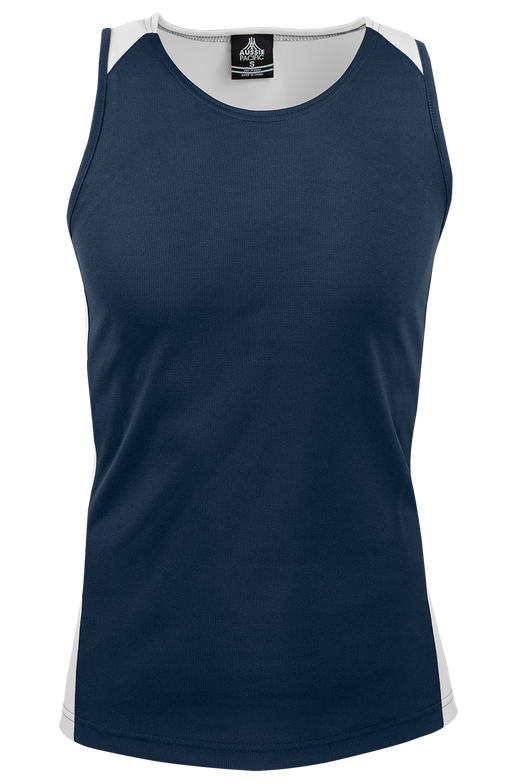 PREMIER MENS SINGLETS - NAVY/WHITE