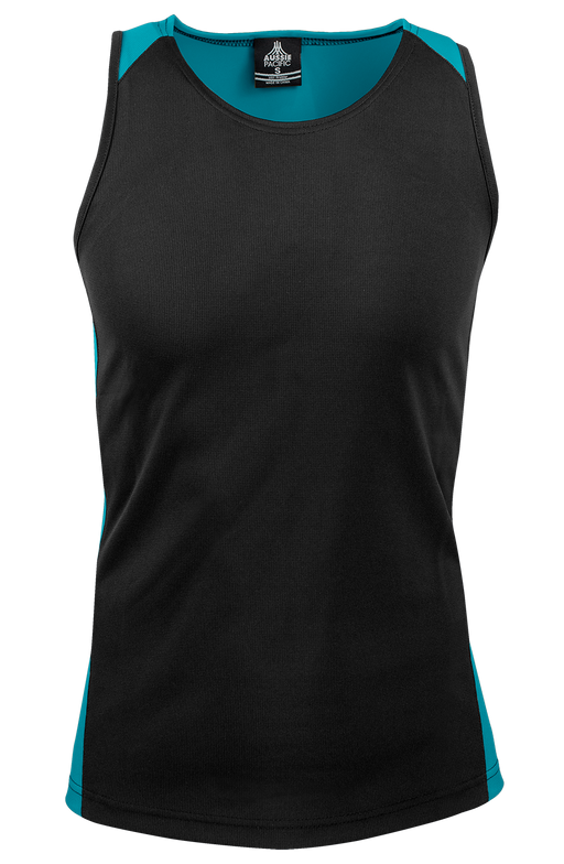 PREMIER MENS SINGLETS - BLACK/TEAL