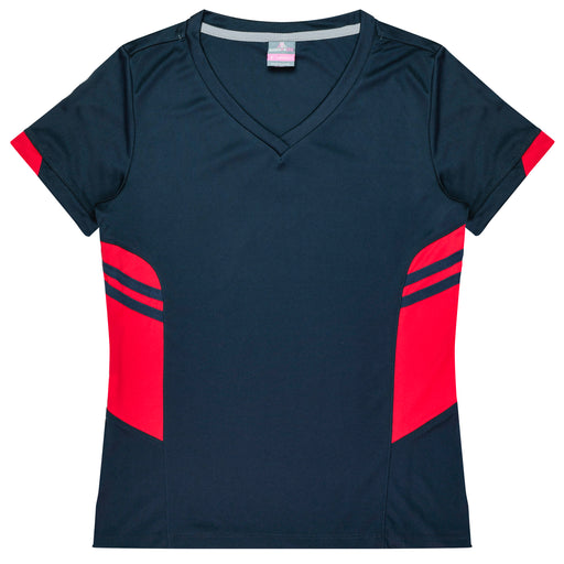 TASMAN LADY TEES - NAVY/NEON GREEN
