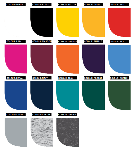 Colours - With over 18 stock colours and ability to custom dye fabric to your brand – the colour opportunities are just about endless