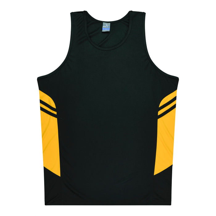 TASMAN MENS SINGLETS - BLACK/GOLD
