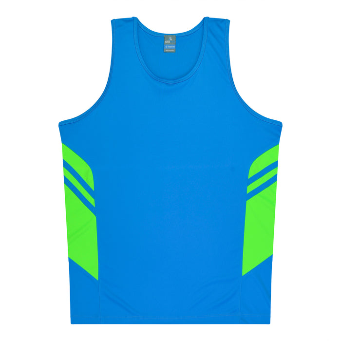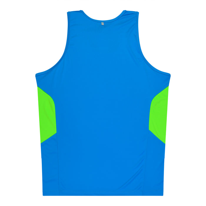 TASMAN MENS SINGLETS - CYAN/NEON GREEN
