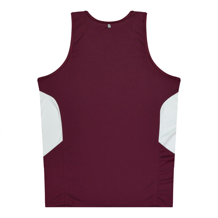 TASMAN MENS SINGLETS - MAROON/WHITE