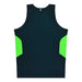 TASMAN MENS SINGLETS - NAVY/NEON GREEN